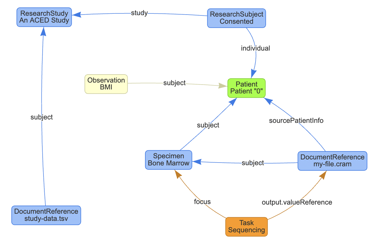References and Linkages: FHIR resources utilize references to establish connections between related entities. These references can be leveraged to create graph-like representations when modeling relationships between patients, specimens, observations, etc.